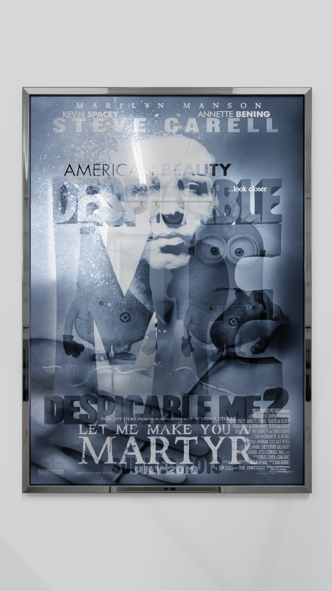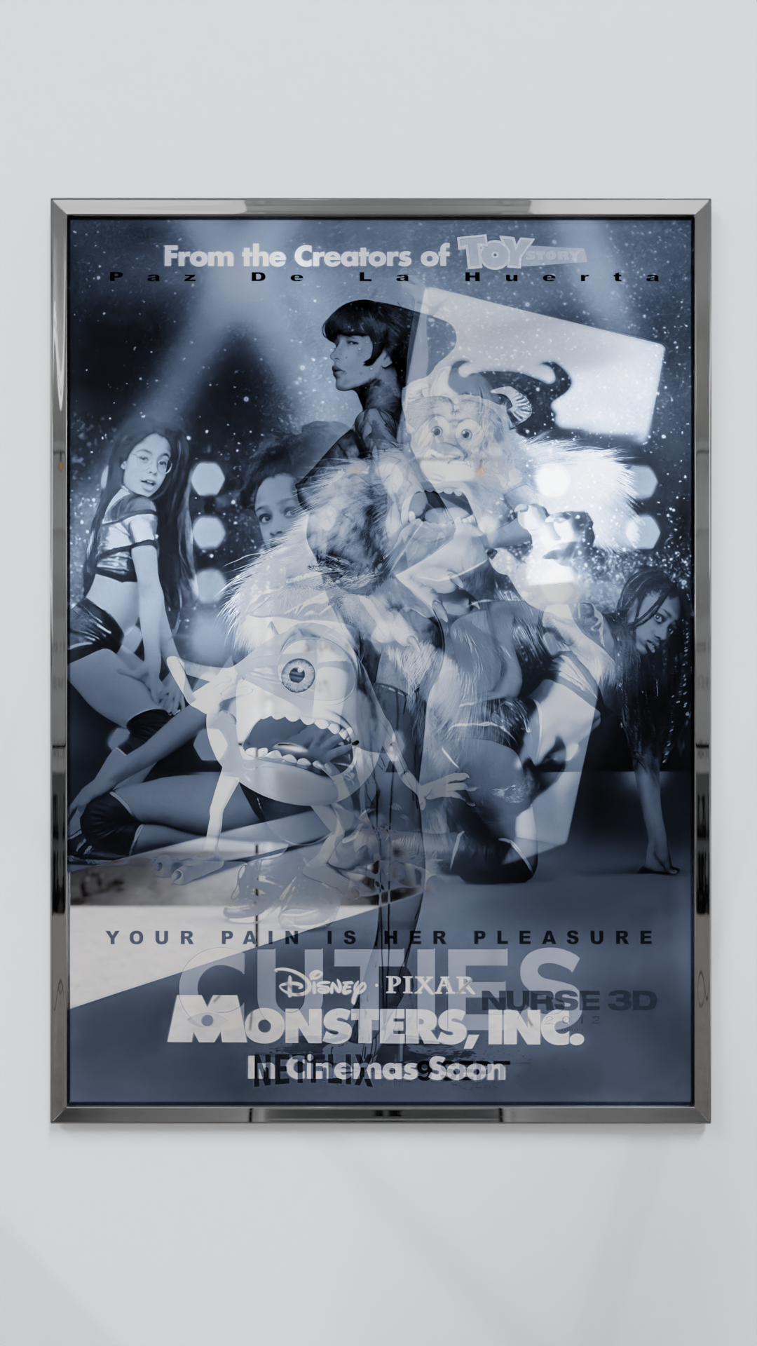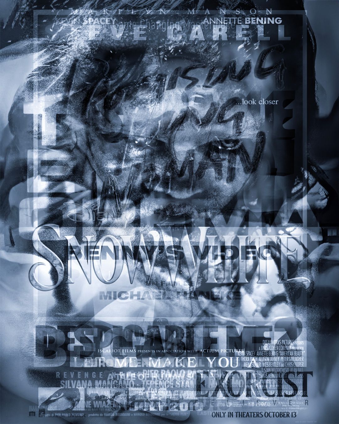 In BASTARDS (BELIEVERS), Julian-Jakob Kneer presents monochrome printed silver mirrors with custom-made galvanized frames. Each one features a layered collage of three seemingly random movie posters. Through crossbreeding ready-made opposing narratives and by sifting through themes of morality and the foundational principles of the human psychology, Kneer’s “movie posters” become contemporary zeitgeist artifacts that confront our supposed socio-cultural binaries of right and wrong, art and pop, and sickness and health. Kneer breaks them down into their constituent parts, and releases them for recasting in a value-free queer space.